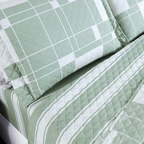 Kit Cobre Leito Colcha Belle Casal Padrão Estampado Dupla Face 400 Fios 3 Peças Quadriculado Verde Transforme o visual do seu quarto com o Kit Cobre Leito Belle, confeccionado em Micropercal 400 fios dupla face, que une a delicadeza do toque acetinado com a resistência e praticidade do tecido de alta qualidade.