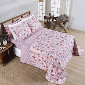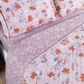 Kit Cobre Leito Colcha Belle Queen Estampado Dupla Face 400 Fios 3 Peças Floral Rosê Transforme o visual do seu quarto com o Kit Cobre Leito Belle, confeccionado em Micropercal 400 fios dupla face, que une a delicadeza do toque acetinado com a resistência e praticidade do tecido de alta qualidade.