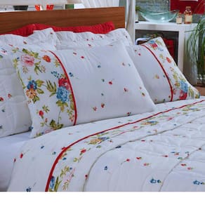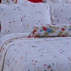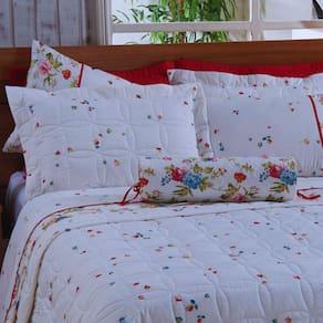 Percal 180 fios, com um babado em composê com acabamento em viés.