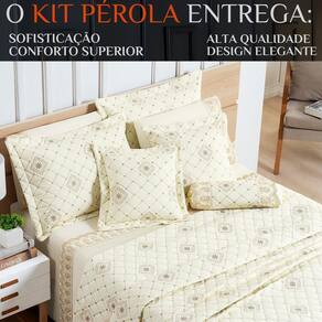 Por que escolher o kit colcha pérola Conforto superior: tecido suave e respirável, ideal para qualquer clima. Estilo sofisticado: bordado elegante para transformar o ambiente. Durabilidade: qualidade premium para durar por muito mais tempo.