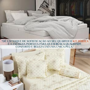 Imagine sua cama vestida com um tecido macio e delicado, que transmite aconchego e beleza ao mesmo tempo. O design elegante e a qualidade superior tornam o kit pérola um item indispensável para quem valoriza bem-estar e estilo.