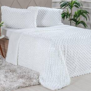 Kit Colcha Casal Luxor Jacquard Toque Pele de Coelho Macio Branco -