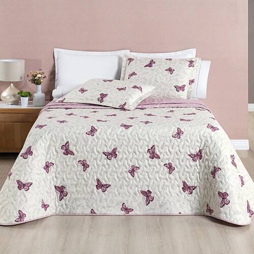 Kit Cobre Leito Colcha Celi Queen Dupla Face Micropercal 200 Fios 3 Peças Borboletas Rosê O Kit Celi é mais do que apenas uma peça de decoração; é uma experiência sensorial. Fabricado com o mais alto padrão de qualidade em mente, o micropercal de 200 fios dupla proporciona uma textura incrivelmente suave e macia, enquanto a atenção aos detalhes nas estampas garante um toque de sofisticação e romantismo ao seu quarto.