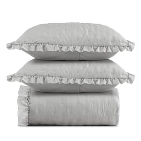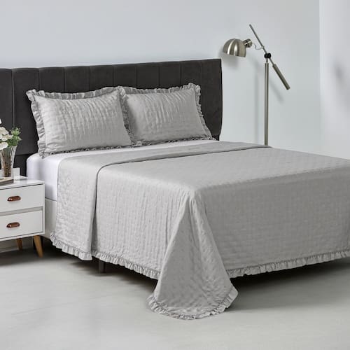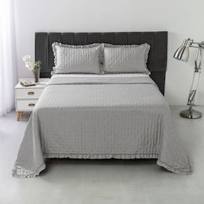 Kit Colcha Cobre Leito 200 fios Queen 3 Peças Bella Cinza
