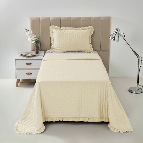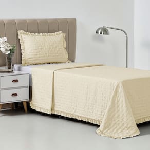 Kit Colcha Cobre Leito 200 fios Solteiro 2 Peças Bella Marfim