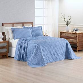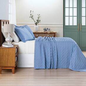 Kit Colcha Cobre Leito Casa Scarpa Plissê King Seersucker Premium 3 Peças Maciez e Leveza com Textura 3D Azul Mineral - Única