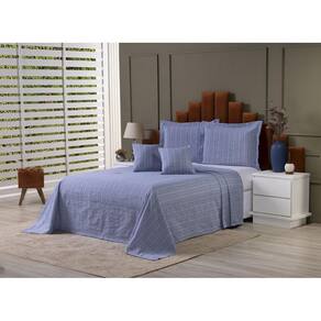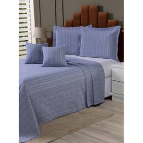 Kit Colcha Cobre Leito Queen + Cortina 2 Metros Tecido Rústico Topázio 6 Peças Cor: Azul Um kit completo pra deixar seu quarto super moderno e elegante.