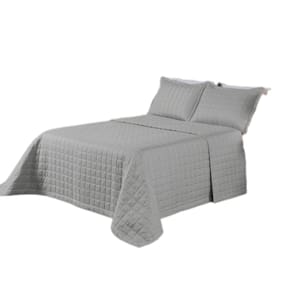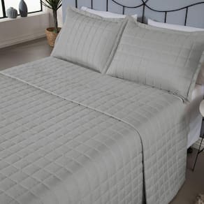 Kit Colcha Cobre Leito Soft Queen 3 Pçs Dupla Face Cinza