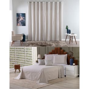 Kit Colcha Cobre Leito Solteiro + Cortina 2 Metros Tecido Rústico Topázio 5 Peças Cor: Bege Avelã Um kit completo pra deixar seu quarto super moderno e elegante.