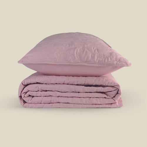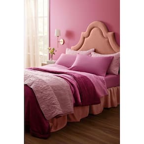 O quarto ganha profundidade com o tom vibrante do fúcsia, Cada detalhe de destaca, como o novo edredom sherpa texturizado ton sur ton, que adiciona charme e conforto na medida certa.