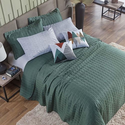 Kit Colcha King 7 Peças 300 Fios Cobre Leito Verde Mountains