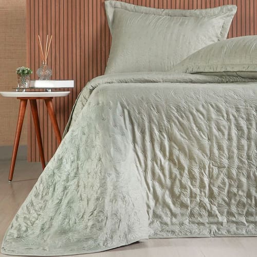 Kit Colcha King Sensatti 3D Embossed 260x280cm Verde Alfafa - 100% Poliéster, Microfibra Lisa 3D Embossed 85g/m², Enchimento 100% Poliester 100g/m²
