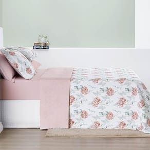 Kit Cobre Leito Colcha Maris Casal Padrão Estampado Dupla Face Percalle 200 Fios 3 Peças Hortênsia Salmão Kit Cobre Leito Maris - Conforto, resistência e beleza em cada detalhe
