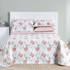 Kit Cobre Leito Colcha Maris Casal Padrão Estampado Dupla Face Percalle 200 Fios 3 Peças Hortênsia Salmão Kit Cobre Leito Maris - Conforto, resistência e beleza em cada detalhe