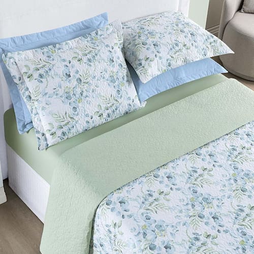 Kit Cobre Leito Colcha Maris Casal Padrão Estampado Dupla Face Percalle 200 Fios 3 Peças Forest Verde Kit Cobre Leito Maris - Conforto, resistência e beleza em cada detalhe