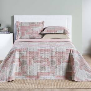 Kit Cobre Leito Colcha Maris King Estampado Dupla Face Percalle 200 Fios 3 Peças Quadri Rosê Kit Cobre Leito Maris - Conforto, resistência e beleza em cada detalhe