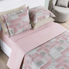 Kit Cobre Leito Colcha Maris King Estampado Dupla Face Percalle 200 Fios 3 Peças Quadri Rosê Kit Cobre Leito Maris - Conforto, resistência e beleza em cada detalhe