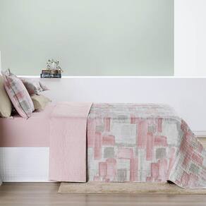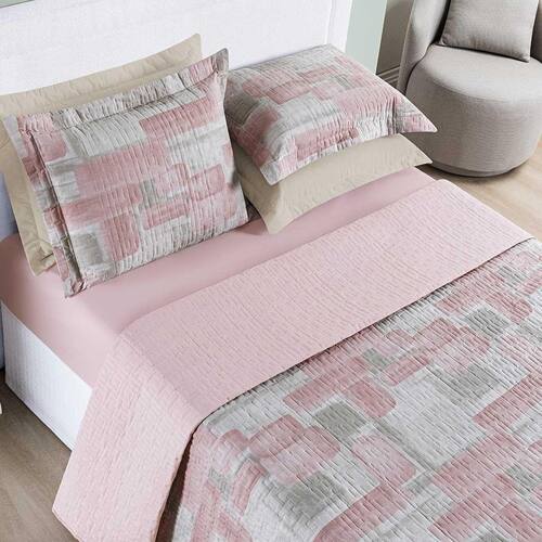 Kit Cobre Leito Colcha Maris Queen Estampado Dupla Face Percalle 200 Fios 3 Peças Quadri Rosê Kit Cobre Leito Maris - Conforto, resistência e beleza em cada detalhe