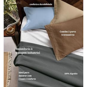 Kit colcha piquet favo king teka gênova 240x280 100% algodão Cor: branco Descrição: kit colcha piquet gênova king com 2 portas travesseiros A coleção gênova tem cores que combinam com todos os ambientes e vão deixar sua casa ainda mais cheia de vida essa colcha é produzida em tecido piquet, que confere charme e dá aquele diferencial para o ambiente. Em 100% algodão, os tecidos são pré-lavados e diminuem o índice de encolhimento, mantendo sua maciez. Este produto acompanha os portas travesseiros Especificações: Categoria: kit colcha Coleção: gênova Material do produto: 100% algodão Gramatura: 250 g/m Medidas do produto: 01 colcha 240cm x 280cm Conteúdo da embalagem: 01 colcha king 02 portas travesseiros 50x70 cm Este produto acompanha os portas travesseiros. Atenção: foto meramente ilustrativa Dúvidas frequentes Todas as mercadorias estão disponíveis para entrega enquanto durarem os estoques. 4. O produto tem Sim, todos os produtos são vendidos com do fabricante. 5. Quanto é o valor do O valor do varia de acordo com o cep do destino. Consulte o valor do na página do produto. 6. Qual é o prazo de entrega O prazo de entrega varia de acordo com o cep do destino e é calculado antes do pagamento. Você pode consultar o prazo de entrega direto na página do produto. 7. Qual é o horário de atendimento De segunda à sexta, das 9h às 17h. Política de troca e devolução A devolução de qualquer produto só pode ser feita no prazo de até 7 sete dias, a contar da data de entrega. Nesse período, se o produto apresentar defeito, ou se você não estiver satisfeito a com a compra, comunique nosso setor de atendimento ao cliente e solicite a troca. Para trocar um produto, as seguintes condições deverão ser observadas: Orientamos que fique atento aos itens abaixo a fim de evitar problemas com sua compra: - descrição, características e especificações do produto; - cor e dimensões do produto imagens meramente ilustrativas ; Marca: Não Informado
