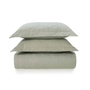 Kit Colcha Queen 200 Fios Tom 100% Algodão Verde Karsten Colcha Queen com 2 Porta Travesseiros 200 Fios Tom Branco