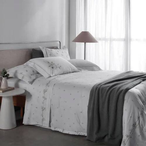 Kit colcha queen cetim 270 fios gaya 100% algodão buddemeyer Característica do produto: A beleza de lírios aquarelados preenche todo o modelo com elegância ímpar no kit colcha matelassado o floral surge sobreposto a tonalidade cinza, criando contraste suave e harmonioso com os lençóis. Qualidade e design buddemeyer