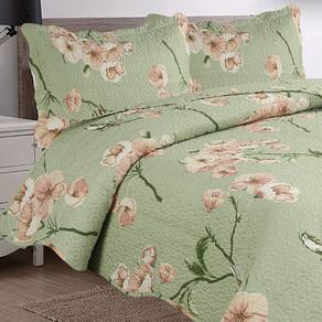- 100% Poliéster; - Enchimento: 100% Poliéster; - Colcha Queen 2,40m x 2,60m; - Porta Travesseiro 50cm x 70cm.
