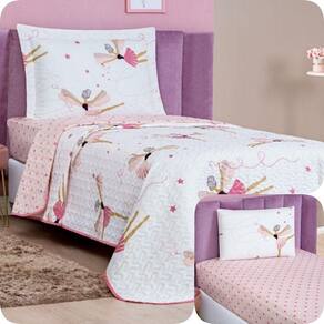 Kit Colcha Solteiro Bouti Kids Com Jogo De Lençol - 4 Peças Bailarina