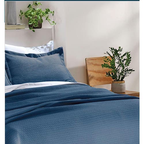 Kit Colcha para cama em tela com textura em relevo, com efeito anarruga, que proporciona volume e toque encorpado ao produto. Decorativa, fresca e confortável, traz o aspecto de natural para a decoração do ambiente.