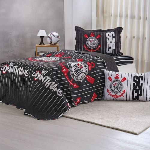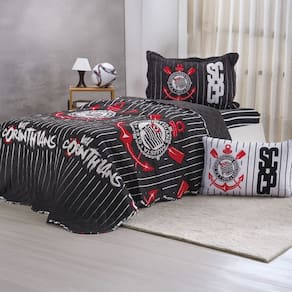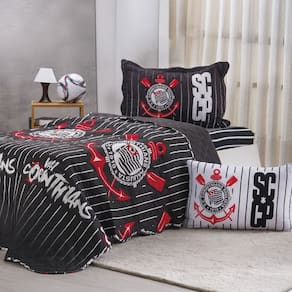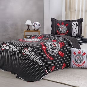 Kit Colcha Solteiro Times de Futebol 100% Poliéster 160x220cm Bene Casa Corinthians -