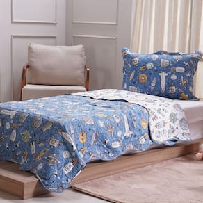 Kit Colcha Solteiro Ultra Lisse New Kids Rolinho 160x220cm Space -