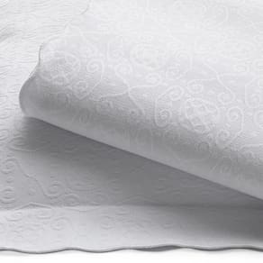 Kit Colcha Tognato Piquet King Branca 3 Peças 2,50 X 2,80 M Uma das mais tradicionais peças de roupa de cama, as colchas de piquet são sinônimos de qualidade que passam de geração para geração. Feita com o mais nobre algodão. Confeccionadas com a tradição dos mestres artesãos italianos, oferecem o conforto único que só o mais puro algodão pode oferecer. Esse Kit contém: 1 Colcha piquet medindo 2,50 x 2,80 m modelo Capela 2 Porta Travesseiros medindo 50 x 70 cm com abas de 4 cm Composição: 100% Algodão.