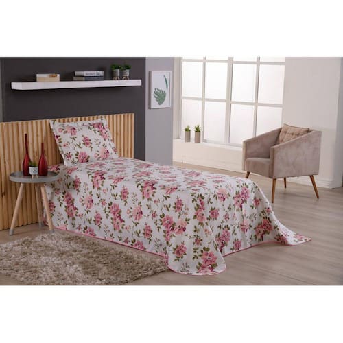 Kit cobre leito viena solteiro 2 peças estampado.Contém:01 cobre leito solteiro 2,20m x 1,60m.01 fronha 0,70cm x 0,50cm.Composição:60% algodão / 40% poliéster- o produto não é matelado.- acabamento em toda a volta com viés.- lindas estampas.- produto de ótimo custo benefício. Marca: Brucebaby Bordados