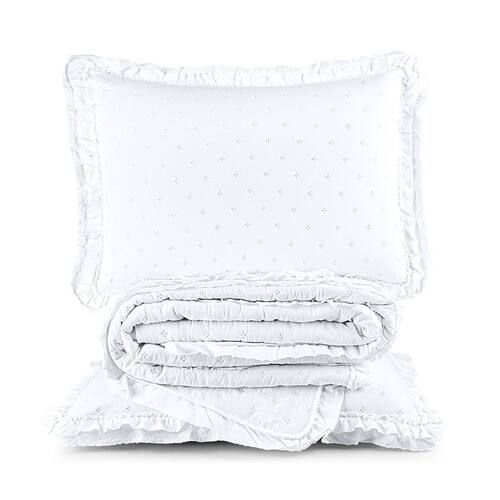 Kit Cobre Leito Colcha Vitta King Matelado com Babadinhos 200 Fios 3 Peças Branco Produzida em Micropercal 200 fios, oferece um toque extremamente macio e suave, garantindo conforto em todas as estações. Seu matelado ultrassônico proporciona acabamento elegante, moderno e resistente, sem linhas de costura aparentes.