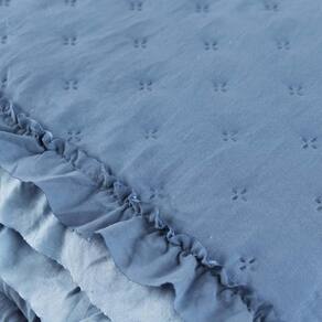 Kit Cobre Leito Colcha Vitta King Matelado com Babadinhos 200 Fios 3 Peças Azul Produzida em Micropercal 200 fios, oferece um toque extremamente macio e suave, garantindo conforto em todas as estações. Seu matelado ultrassônico proporciona acabamento elegante, moderno e resistente, sem linhas de costura aparentes.