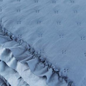Kit Cobre Leito Colcha Vitta Queen Matelado com Babadinhos 200 Fios 3 Peças Azul