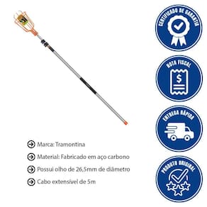 - Para alcançar aqueles locais mais altos, seja para realizar a poda de galhos, ou para colher frutas, conte com o cabo metálico extensível 5 metros Tramontina para serrote e colhedor de frutas.