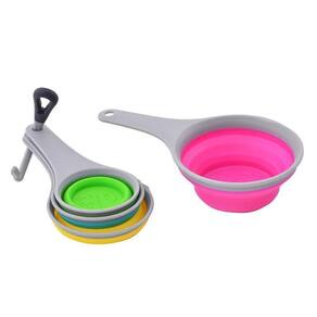 Kit colher de medidas bake time pt 4 pecas o funcionamento do kit de medidores é bastante simples. Ele funciona como referência para as principais medidas utilizadas durante a execução de receitas, portanto, para utilizá-lo basta que se preencha o recipiente contendo a medida desejada com o ingrediente que se deseja medir.Além disso, o kit medidor em silicone é retrátil, o que permite que o mesmo seja acomodado com muito mais facilidade e ocupando pouco espaço. Medidas: 28 x 11 cm material: silicone capacidade: 59ml, 79ml, 118ml, 237ml Marca: Não Informado