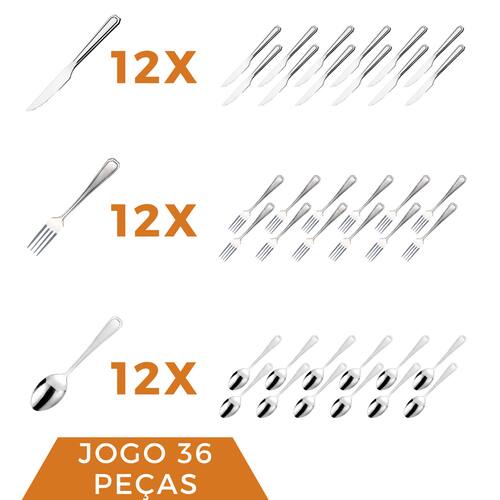 Kit Colher Garfo Faca Aço Inox 36 Peças Bar / Restaurante