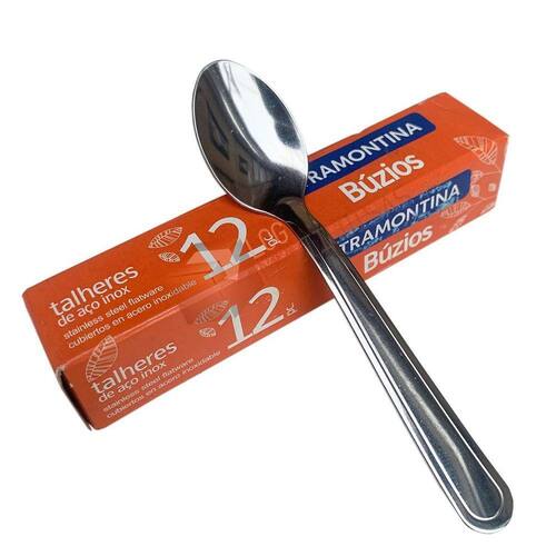 Kit Colher para Sobremesa 12 Pç Búzios Inox - Tramontina A sobremesa faz parte de um ritual de alegria e união, a Colher para Sobremesa em Aço Inox Tramontina Búzios auxilia nesses momentos de compartilhamento. Fabricado com materiais de alta qualidade, o talher é de fácil manuseio devido a sua espessura e design inteiramente de aço inox. Simples para limpar, pode ser levado à máquina de lavar e é caracterizado por sua durabilidade e resistência. Coma bem usando produtos Tramontina.Marca: TRAMONTINAQuantidade: 12 PeçasTalher produzido em aço inox que mantém a beleza, a higiene e a durabilidade.Colher que garante maior resistência devido a espessura do aço e a estampagem da lâmina.Pode ir à máquina de lavar louças facilitando seu dia a dia.