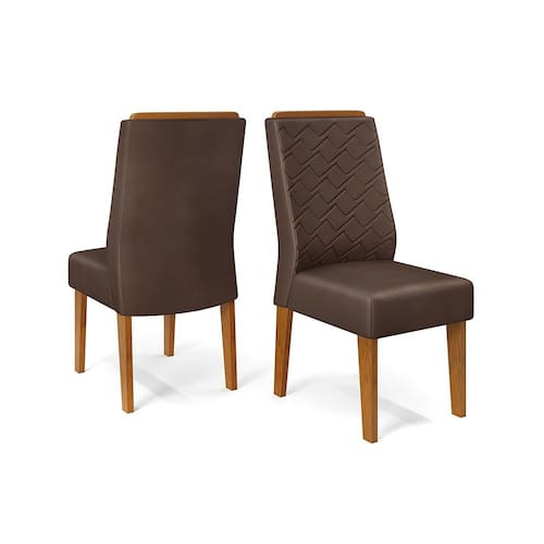 Características: Estrutura em MDF/ MDP Encosto levemente inclinado com bordado Sapatas deslizadoras Espaldar usinado em MDF Densidade da espuma do assento D20 / Encosto D13 Suporta até 130 kg