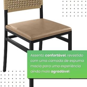 Duas cadeiras estofadas com encosto trançado em corda náutica, combinando conforto e estilo. O design moderno e resistente é ideal para ambientes internos e externos, oferecendo durabilidade e elegância. Perfeitas para complementar a decoração de salas de jantar, varandas ou áreas gourmet. Ambiente Principal: Sala de Jantar codigo_ean: 7909903974032 Cor: Preto /Bege / Sépia Cor do Produto: Preto /Bege / Sépia Escala de Brilho: Semi-Fosco Itens Inclusos: 02 Cadeiras Madri. Marca: PAONANDA DECOR Material Principal: Aço Necessita Montagem: Não Origem do Produto: Nacional Peso: 13 kg Marca: PAONANDA DECOR