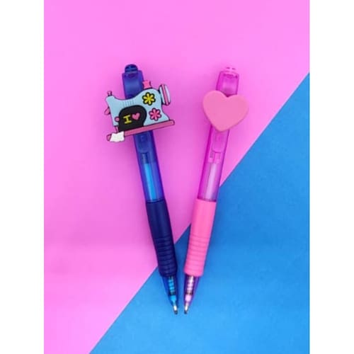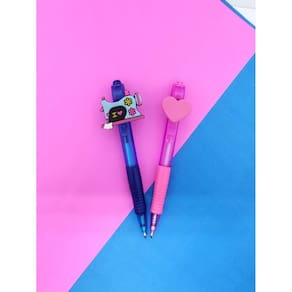 Kit com 02 Canetas Esferográficas com aplique ponta médiaescrita maciaTINTA AZUL
