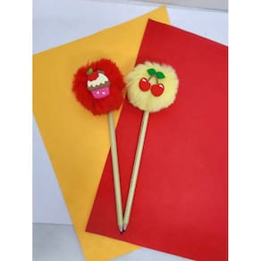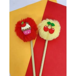 02 Lápis de escrever com pompom com aplique cereja e cupcake