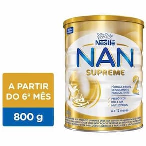Descrição: Nan supreme 2 é uma fórmula infantil de seguimento para lactantes a partir de 6 meses. Possui um mix de gorduras que incui os ácidos graxos essenciais, além de vitaminas e minerais. E proteína nestlé parcialmente hidrolisada super premium. Fórmula infantil para lactentes de 6 a 12 meses de idade. Com prebióticos, dha, ara e nucleotídeos. Não contém glúten. O ministério da saúde informa: o aleitamento materno evita infecções e alergias e é recomendado até os 2 dois anos de idade ou mais. Ean: 7613034968005