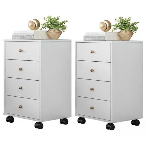 Kit Com 02 Mesa de Cabeceira Presence, com muito espaço para organizar o quarto além de embelezar o ambiente, possui estrutura em MDP de 15mm e 12mm, acabamento em pintura UV (Brilho). Composta por 04 gavetas com corrediças metálicas, puxadores com design redondo e sofisticado, conta ainda com 04 rodizios que irá facilitar a locomoção, com um visual clean e sofisticado, este com certeza é a melhor opção de apoio ao lado da cama. Estes móveis chegarão em sua casa separados em 02 volumes.