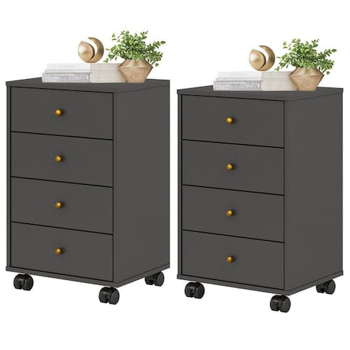 Kit Com 02 Mesa de Cabeceira Presence, com muito espaço para organizar o quarto além de embelezar o ambiente, possui estrutura em MDP de 15mm e 12mm, acabamento em pintura UV (Brilho). Composta por 04 gavetas com corrediças metálicas, puxadores com design redondo e sofisticado, conta ainda com 04 rodizios que irá facilitar a locomoção, com um visual clean e sofisticado, este com certeza é a melhor opção de apoio ao lado da cama. Estes móveis chegarão em sua casa separados em 02 volumes.