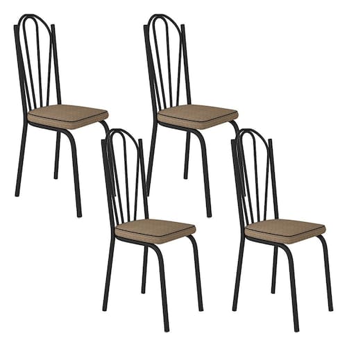 Kit Com 04 Cadeiras 121 Preta Corino Rattan Artefamol - Marrom