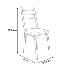 Características: Estrutura em Aço Carbono Assento com espuma D-23 Pintura eletrostática a pó na cor (Fosco) Revestimento do assento em material sintético Sapatas de polipropileno Suporta até 90 kg sem Impacto