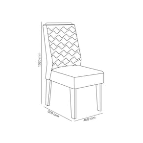 Características: Estrutura em MDF/ MDP Encosto levemente inclinado com bordado Sapatas deslizadoras Espaldar usinado em MDF Densidade da espuma do assento D20 / Encosto D13 Suporta até 130 kg