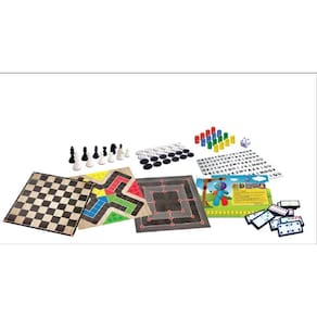 6 Jogos Clássicos (Xadrez, Dama, Ludo, Dominó, Trilha e Jogo da Forca), este jogo é diversão garantida para toda a família, pois tem vários estilos diferentes, onde será possível exercitar sua paciência, inteligência e criatividade. Idade: a partir d6 anos.Contém: 4 Tabuleiros(Dama, Xadrez, Ludo, Trilha e jogo da Forca); 32 Peças para o Jogo de Xadrez(16 brancas e 16 pretas); 16 Peões para o Jogo de Ludo(4 vermelhos, 4 verdes, 4 azuis, e 4 amarelas); 1 dado para o Jogo de Ludo;24 Peças para o Jogo de Dama e Trilha(12 pretas e 12 brancas); 128 Fichas com letras para o Jogo da Forca; 28 Pedras para o Dominó.